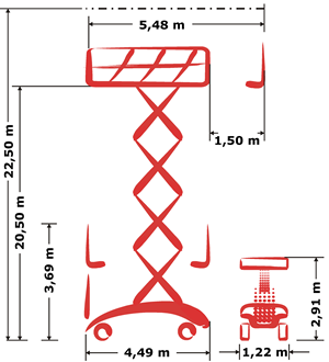 • Dit maakt het geschikt voor stadswerk op gemeenschappelijke trottoirs en in smalle ruimtes – en dat op een werkhoogte tot 22,50 m